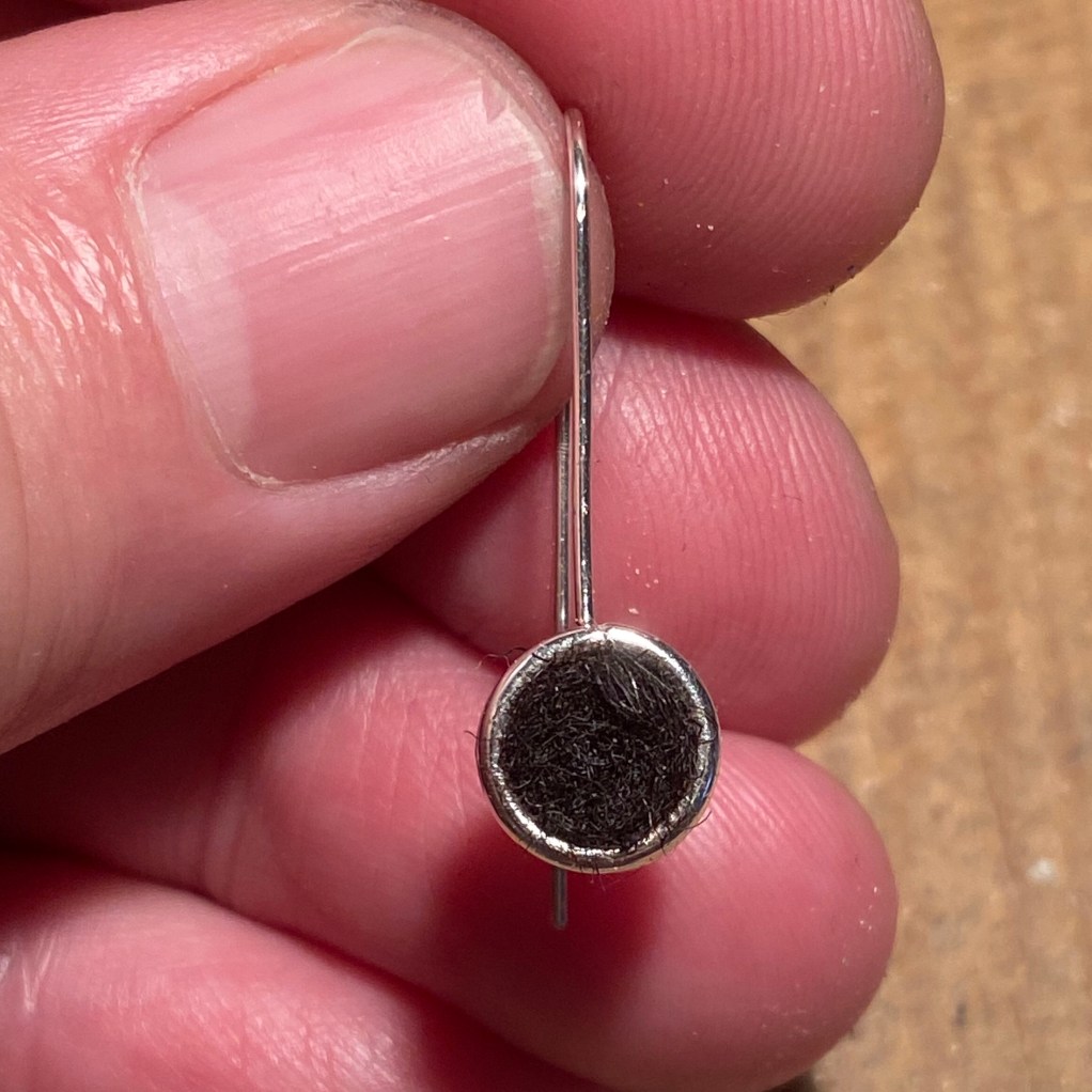 Men så kom lusten att använda ull tillbaka. Dock var jag helt säker på att inte fortsätta med den gamla designen på örhängen eller halsband som jag gjorde. Efter en tid av funderande och skissande började en ny variant av örhängen växa fram. Någon form av ”basketsetting” till ullen eller korginfattning som kanske är den svenska översättningen.