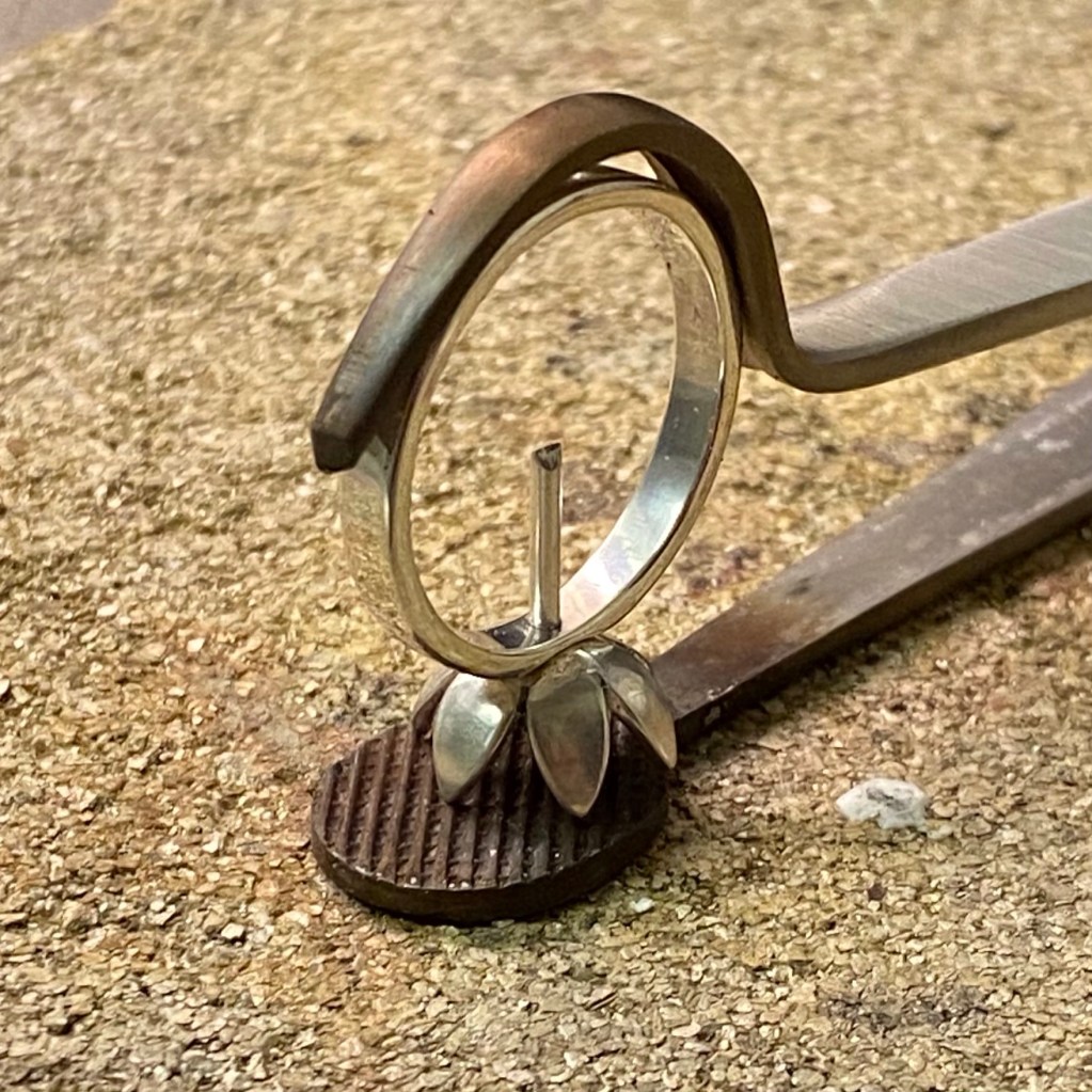 Nu får blomman/skålen vila lite medan jag börjar med själva ringen. Sågar ut en ringskena och böjer ihop ändarna så det går att löda ihop ringen.