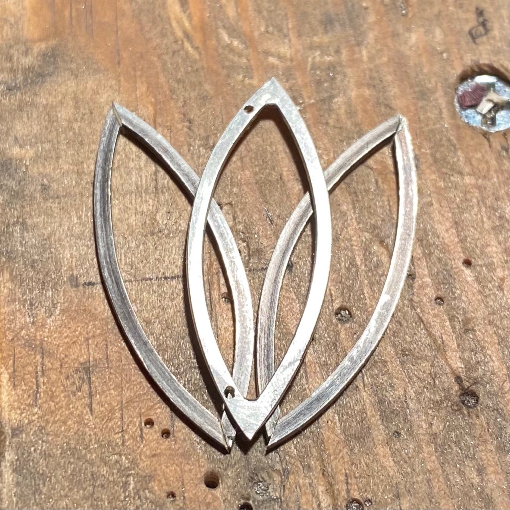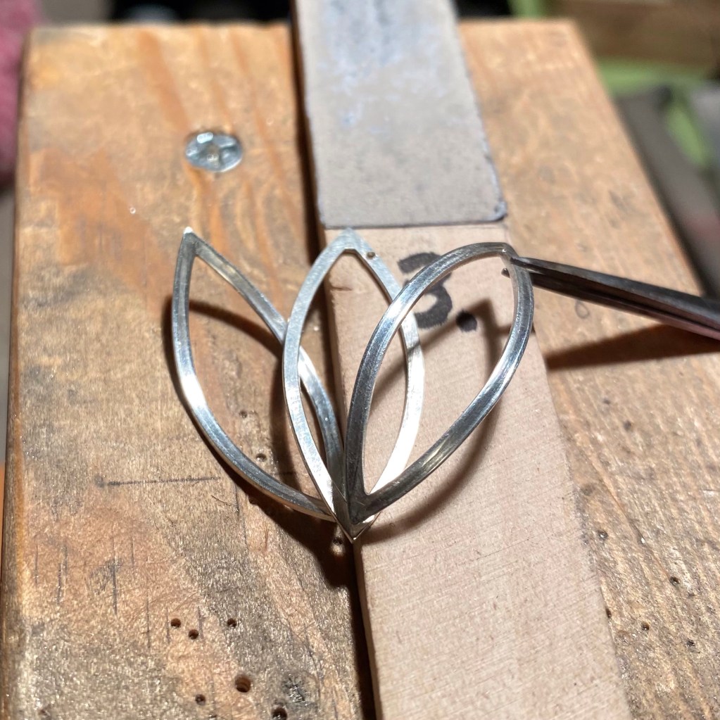 Jag är lite svag för smycken som inte är platta, så någon form av volym var önskvärt. Böjde därför till 2st ”blad” i puckelankan.