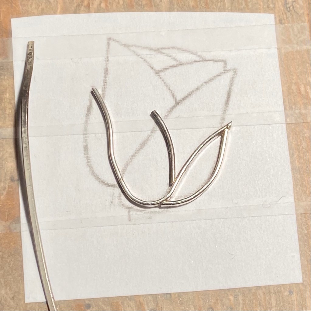 Jag tejpade upp en skiss på filnageln så jag hade något att utgå ifrån. Sedan var det bara att börja böja tråden…