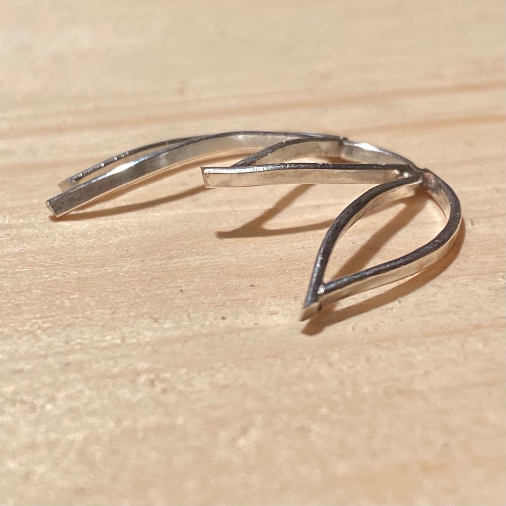 Har blivit väldigt förtjust i smycken som är gjorda i silvertråd. Man kan göra dem minimalistiskt luftiga samtidigt som de visar form. Flera av mina senaste smycken består av rund eller fyrkantig silvertråd som har dragits i dragjärn och valsats till önskade dimensioner.