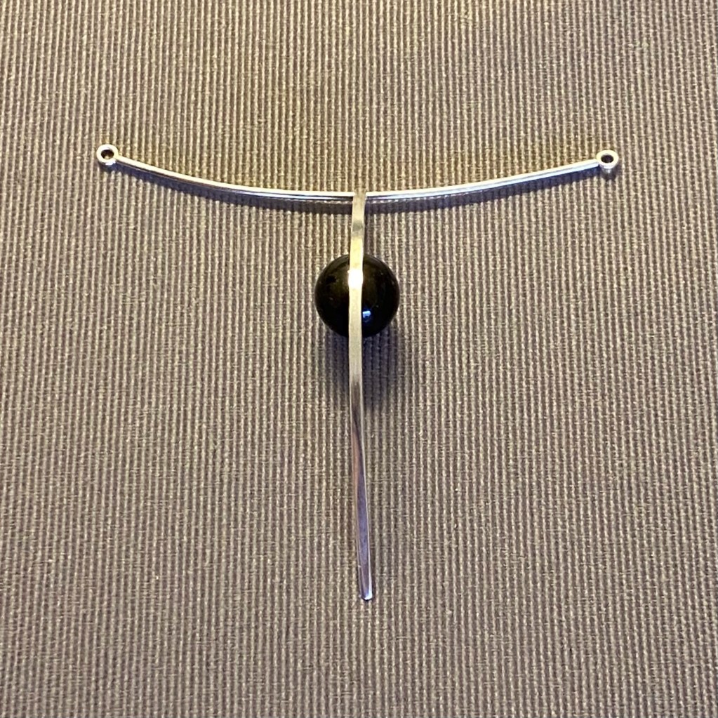 Det är ett väldigt enkelt halsband i grunden. En svart onyx på en böjd silverskena. Men det stora tankearbetet kom att handla om hur själva hänget skulle fästas vid kedjan.