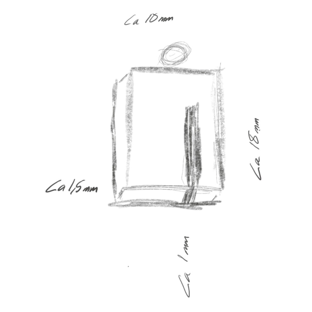 Jag brukar använda en app som heter Concepts på min iPad. Där kan jag rita i skala för att se om tankarna fungerar. Det är flera gånger som jag har fått tänka om för att vissa bitar behöver vara större eller mindre. Men den ”färdiga” skissen ger ingen känsla över smycket.