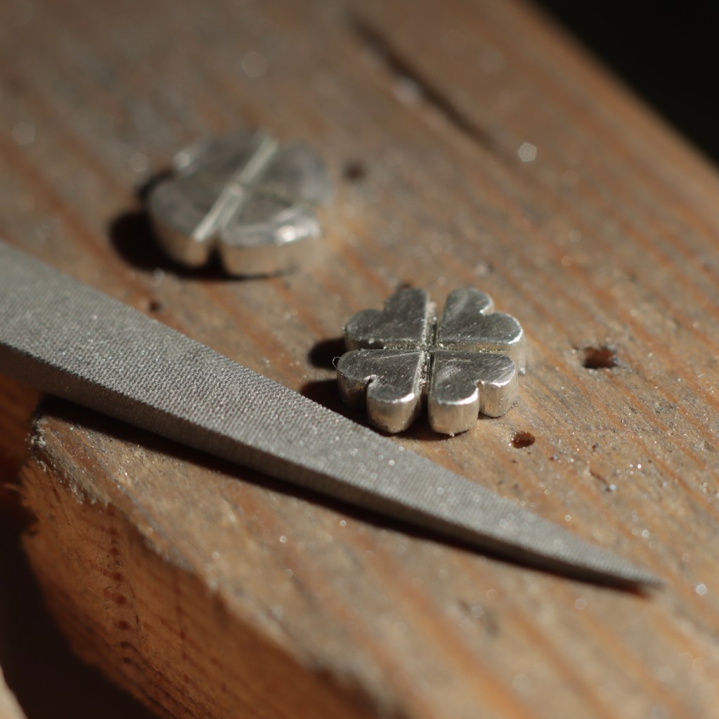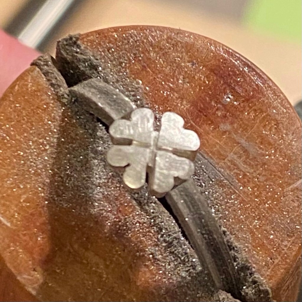 Lite klurigt var det att behålla rätt storlek på ringen när jag filade in fyrklövern. Men allt gick bra och lödningarna orsakade inga problem heller.