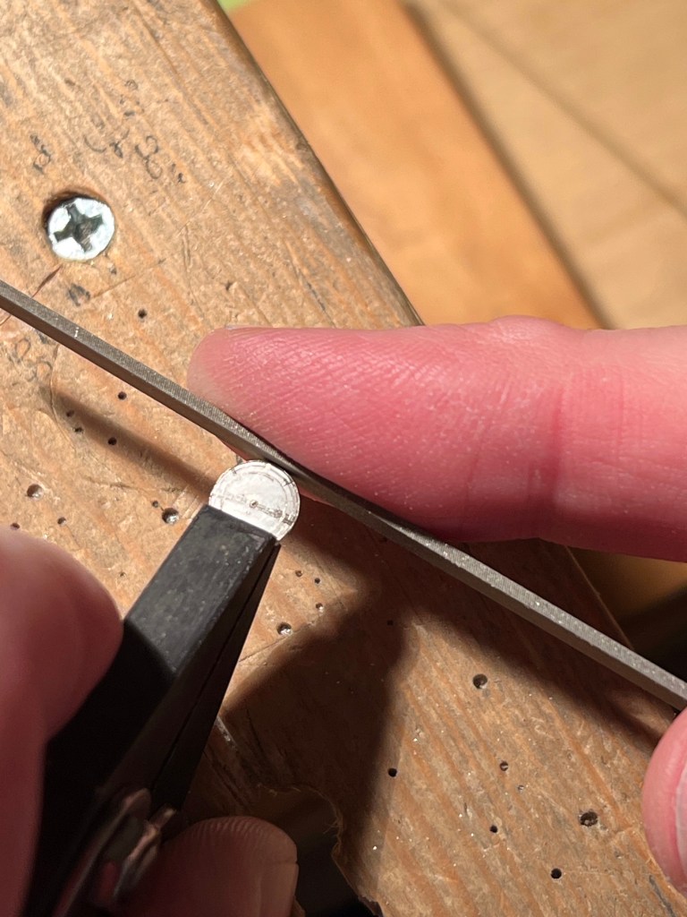 Det är egentligen inget speciellt svårt projekt. Bara en del sågande och filande. Började med att såga ut två runda silverplattor och jämnade till dem med filen.