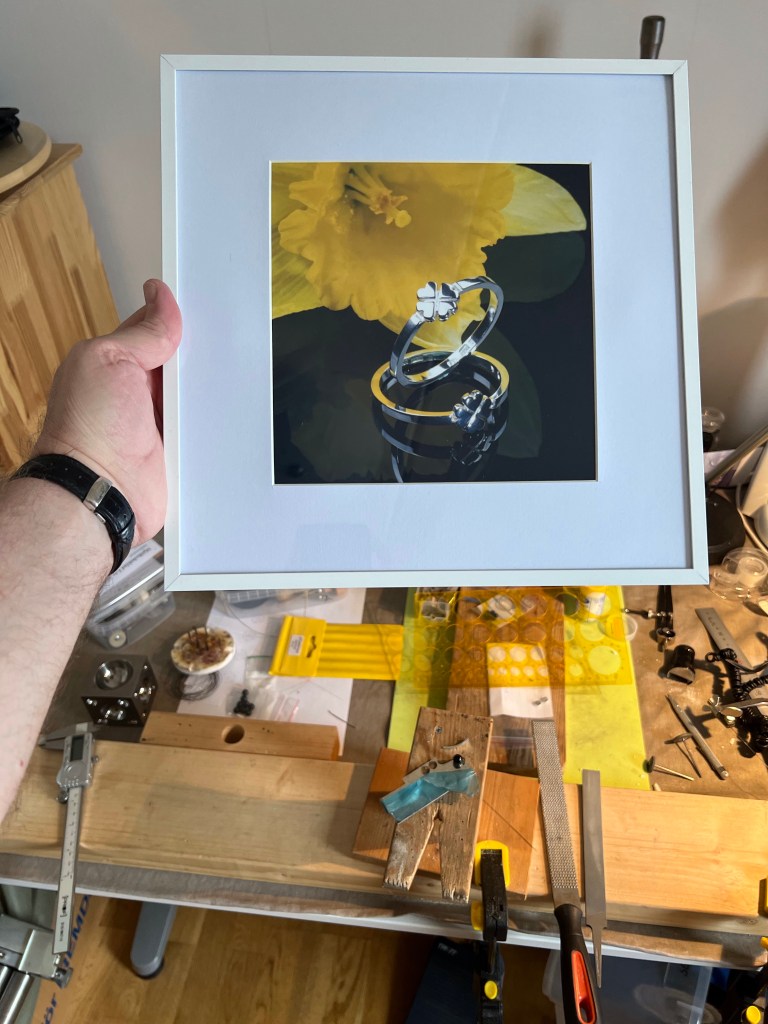 Tycker själv att både ringar och foto blev väldigt bra. Så nu har jag gjort en tavla, som ska sitta i ateljén av fotografiet.
