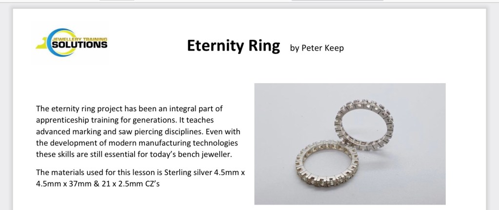 Eternity Ring, en webbkurs från http://www.jewellerytrainingsolutions.com hade fångat mitt intresse. Efter att kollat igenom förhandsvisningen några gånger så beslutade jag mig för att det där borde jag testa. Men jag ville göra ett par örhängen istället för en ring och med 2mm stenar istället för 2,5mm. Det borde nästan bli lättare…